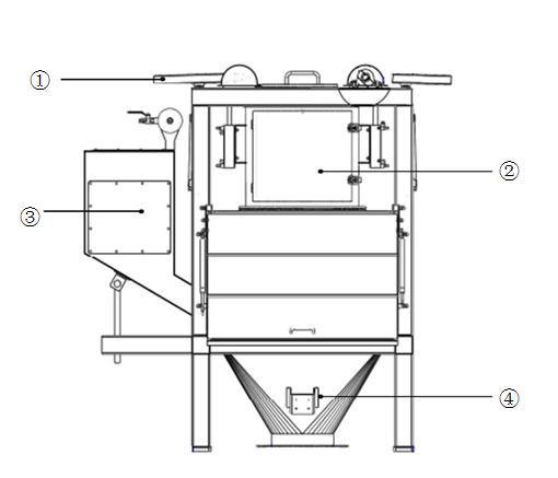 ①拍打裝置?? ②受料倉(cāng)組件?? ③收塵組件?? ④投料站倉(cāng)體
