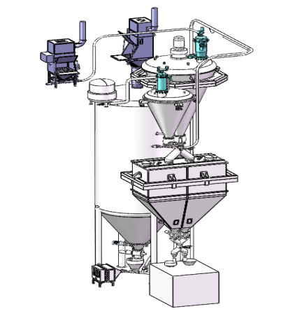 工作原理: 它通過人工拆袋自動傾倒等步驟使物料靠重力落進貯斗中來完成拆袋卸料工作,作業中產生的粉塵被所攜帶的除塵裝置濾除使工人能在清潔的環境中輕松地工作。